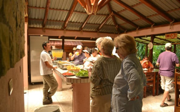 After this two-hour stop, it is time to move on to our next adventure of the day. Eco Finca Don Juan is located in El Burío, just 15 minutes away. This farm is owned by a real farmer named Don Juan, who will meet to start an entertaining and educational tour of all plantations, finding and tasting fruits that you probably didn´t know existed before today! Also, he will share his knowledge about these ingredients’ medicinal, industrial, and gastronomical benefits. The farm and a small stream that runs through it attract birds, acting as a haven for them. The Eco farm has a mill to experience the traditional sugar cane process. Enjoy a sip of cane liquor and conclude the visit in the dining room, where Mrs. Yamileth (Don Juan’s wife) prepares a delicious, healthy, typical lunch with fresh, organic ingredients. She uses a stove that runs on methane gas produced by the farm’s biodigester.